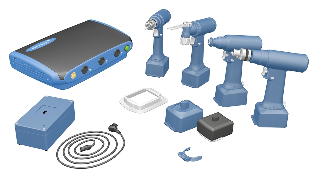 The heavy duty can be powered either by a fast charging Li-Ion rechargeable batteries or sterile packed cable into the power console.